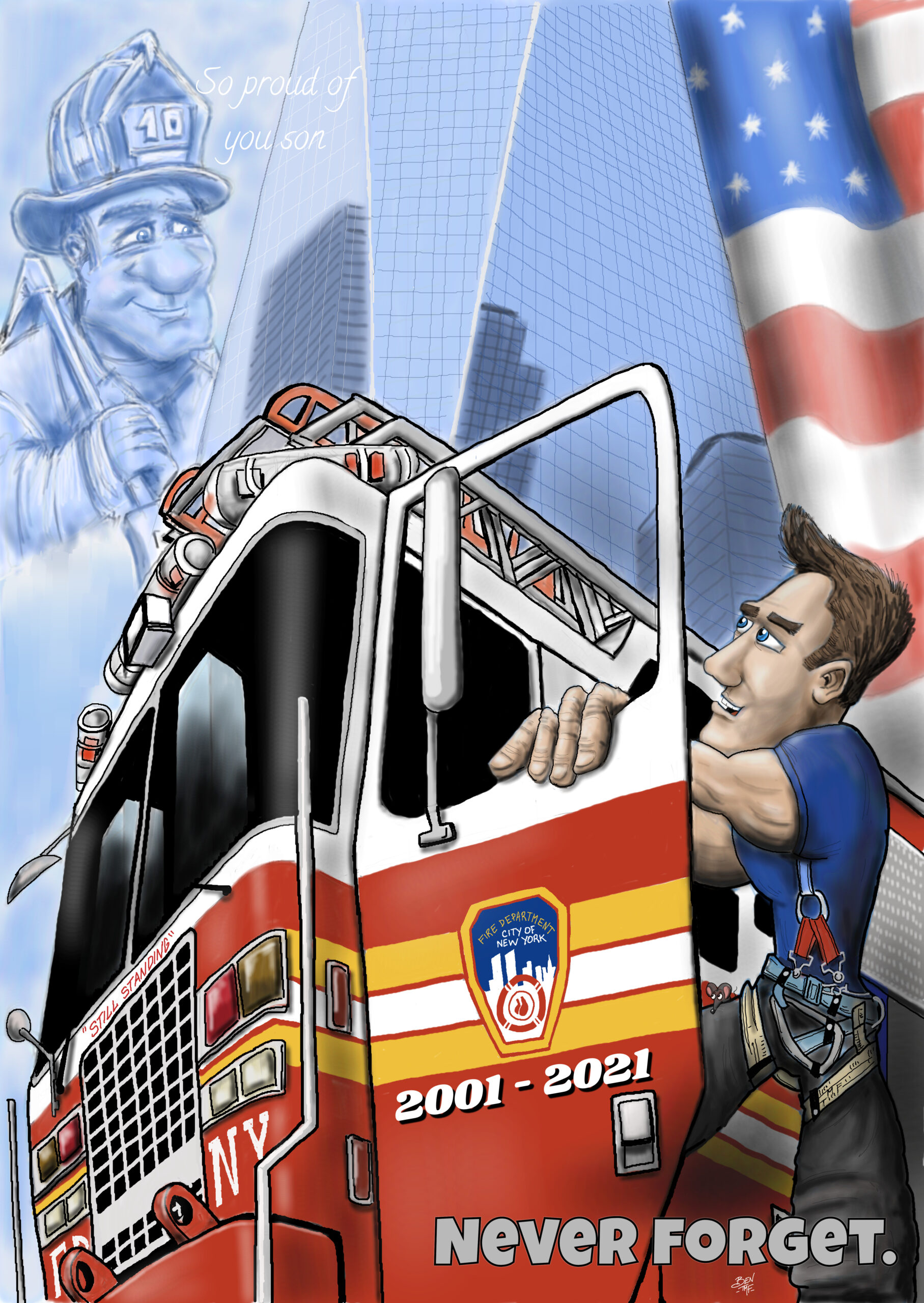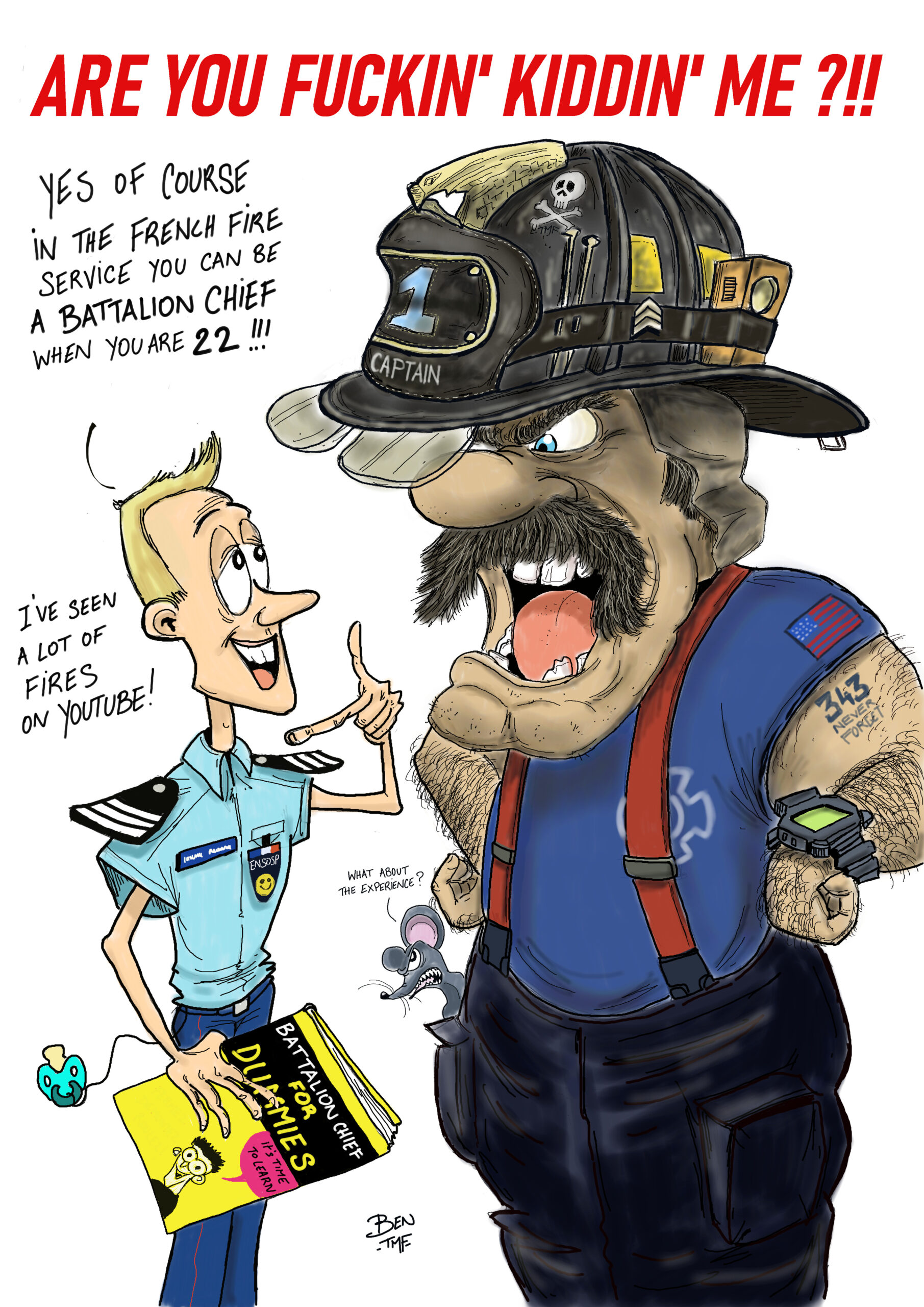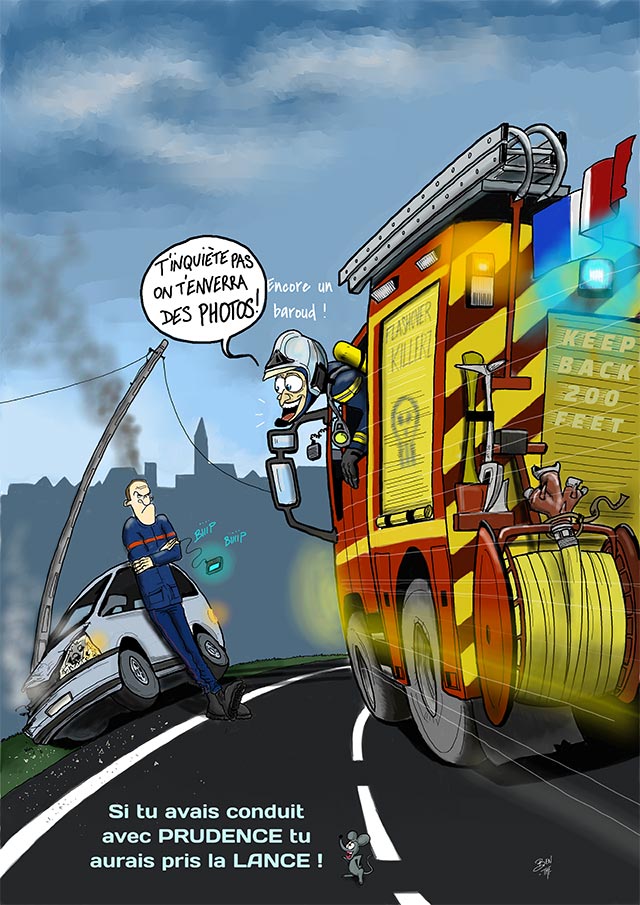BEN TMF works as a lieutenant in a Fire Department in France. Also an artist, he realizes illustrations for the famous french fire magazine called Soldat du feu since 2013.