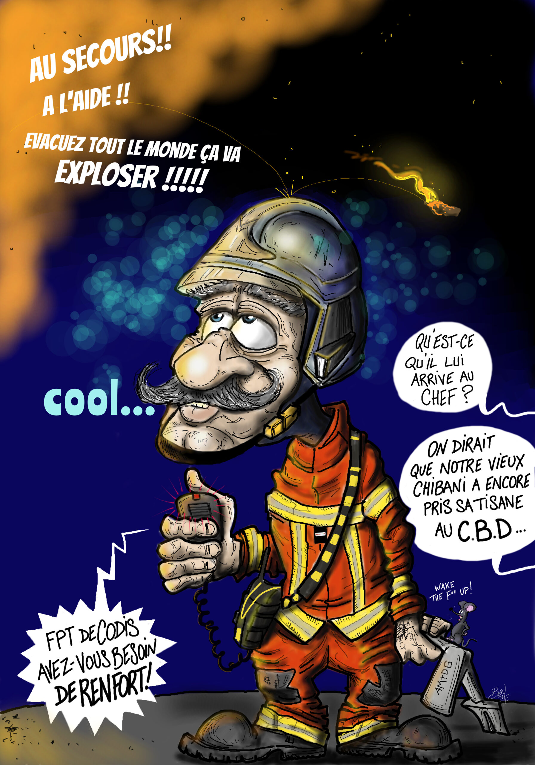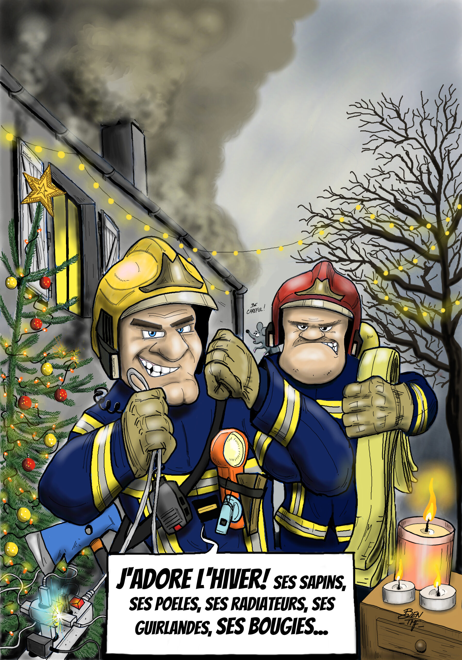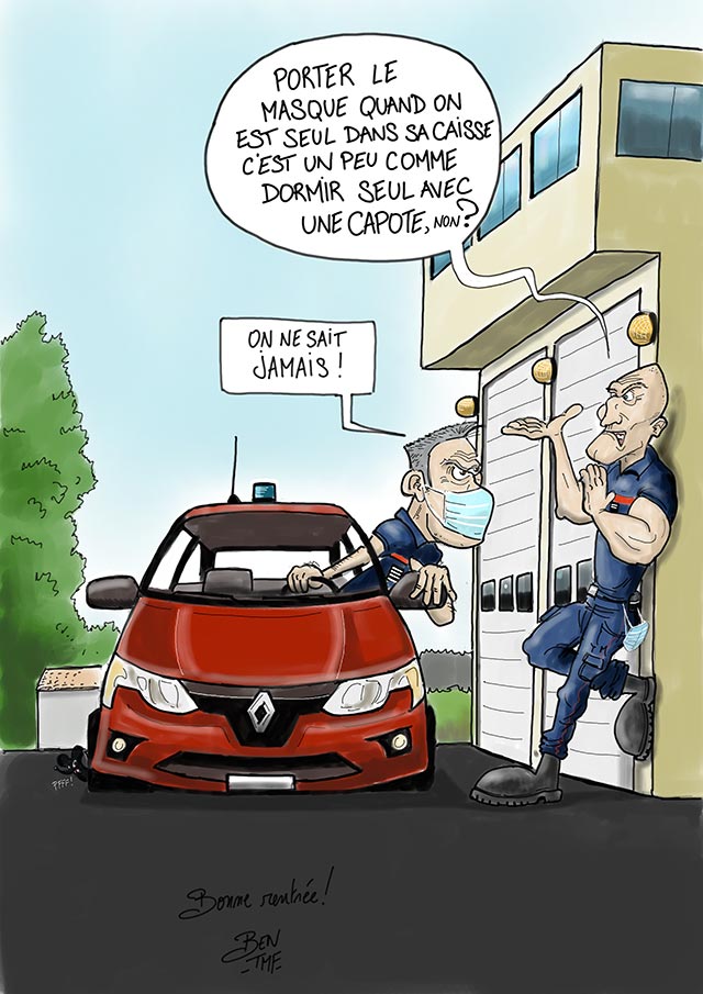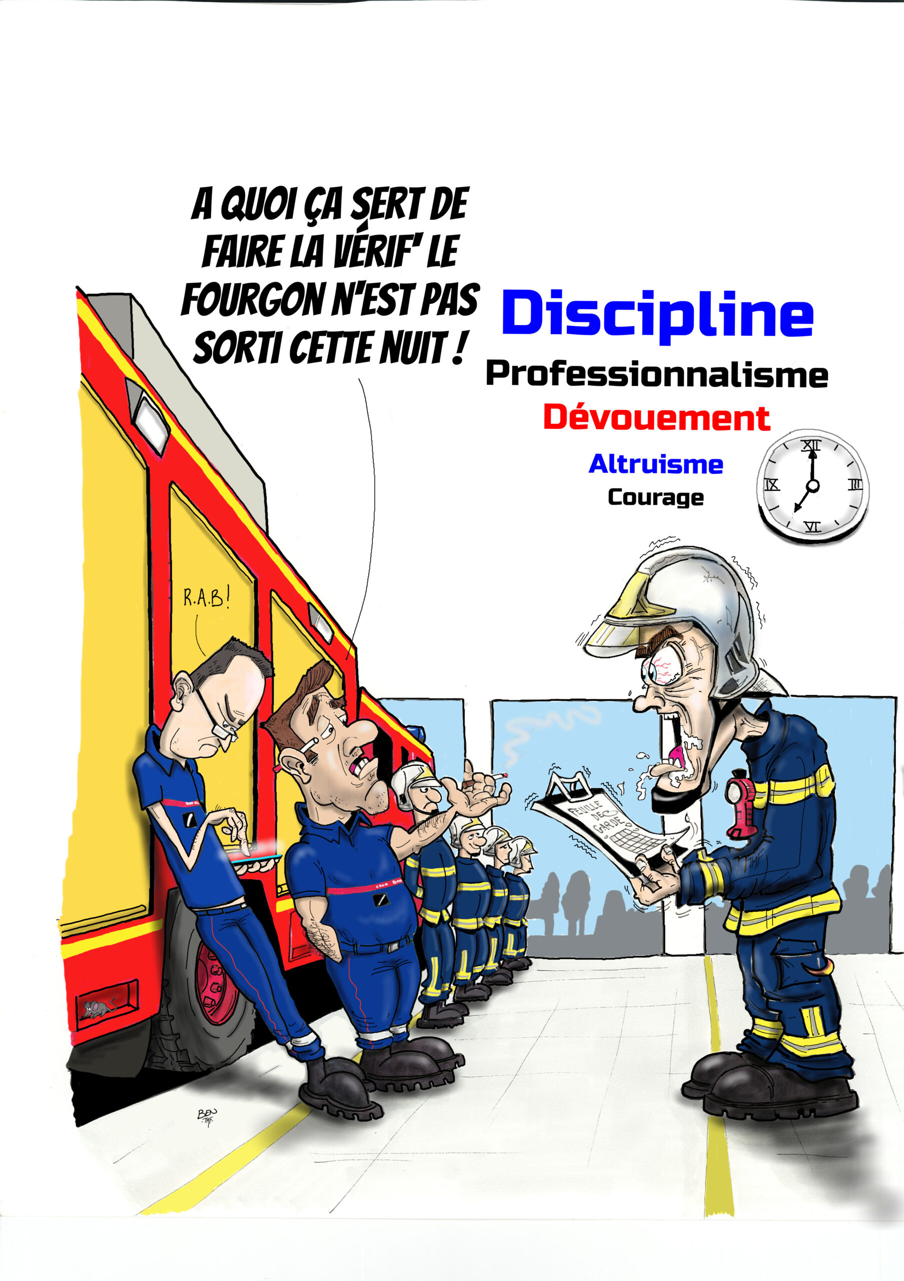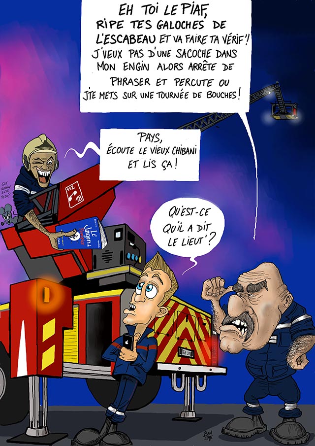 « BEN TMF » est pompier professionnel. Ses ouvrages de dessins « ça part dans les combles » TOME 1 et TOME 2 sont disponibles aux éditions Soldat du Feu. Depuis 2013, il illustre la dernière page du magazine des pompiers de France, Soldat du feu.