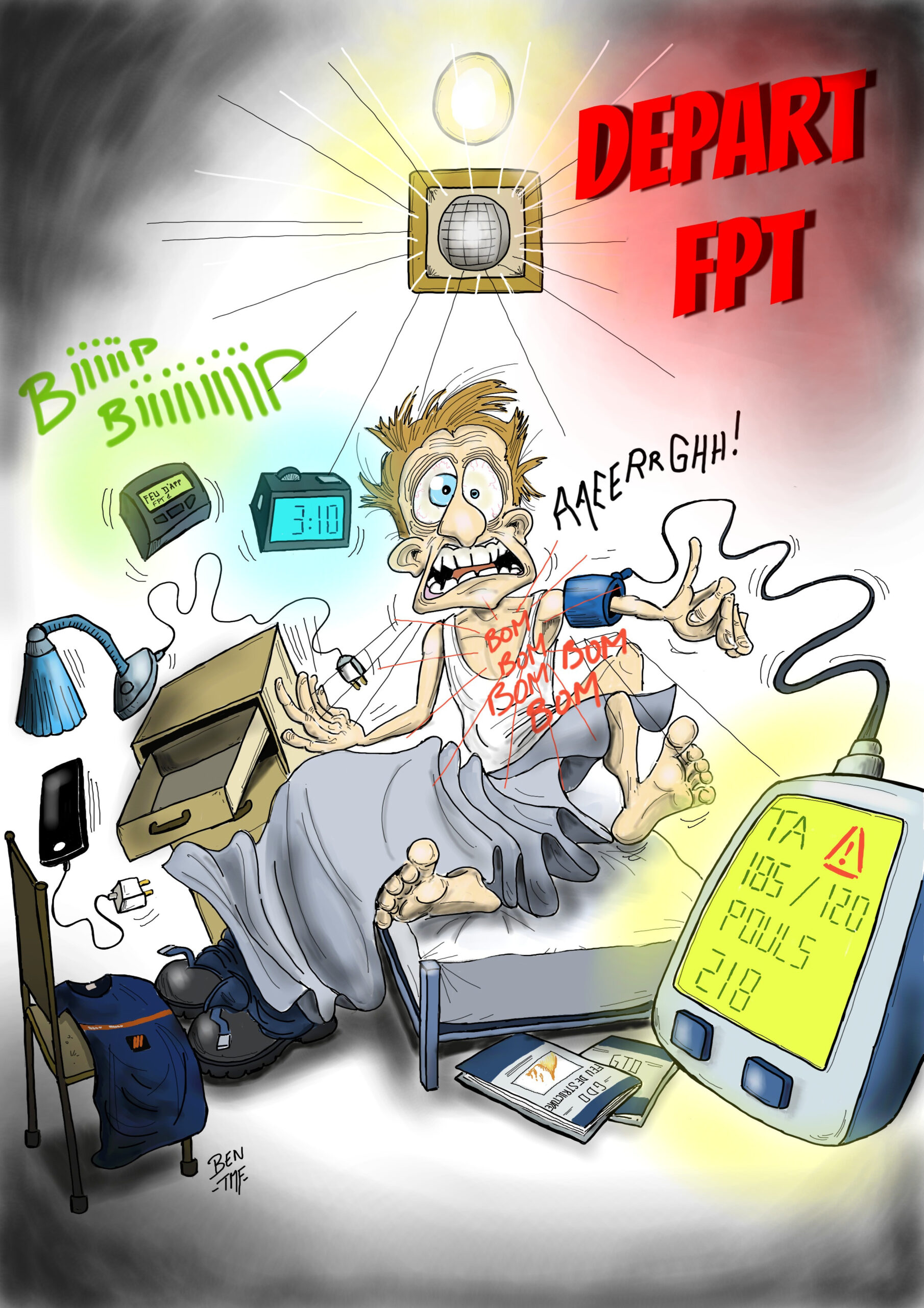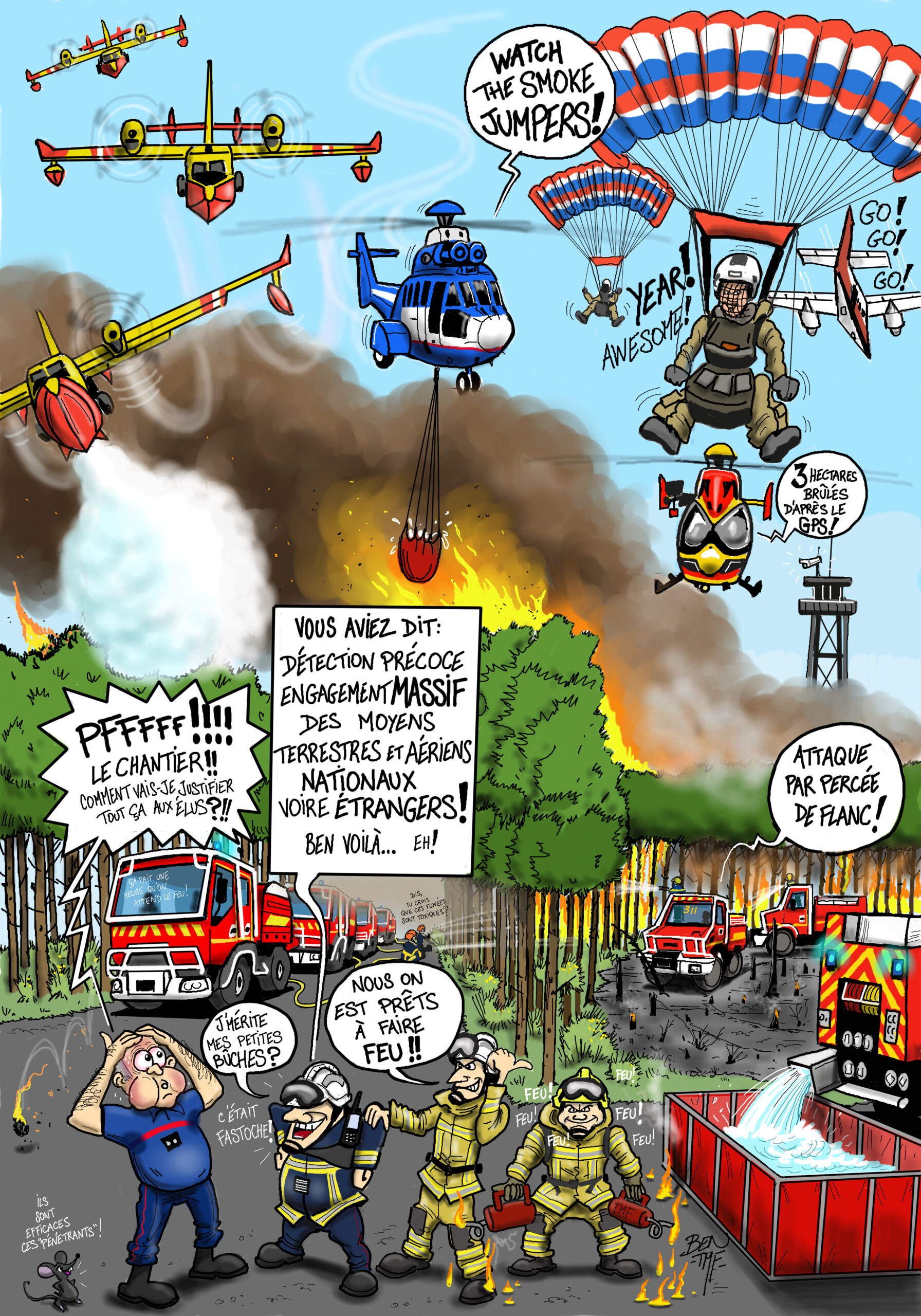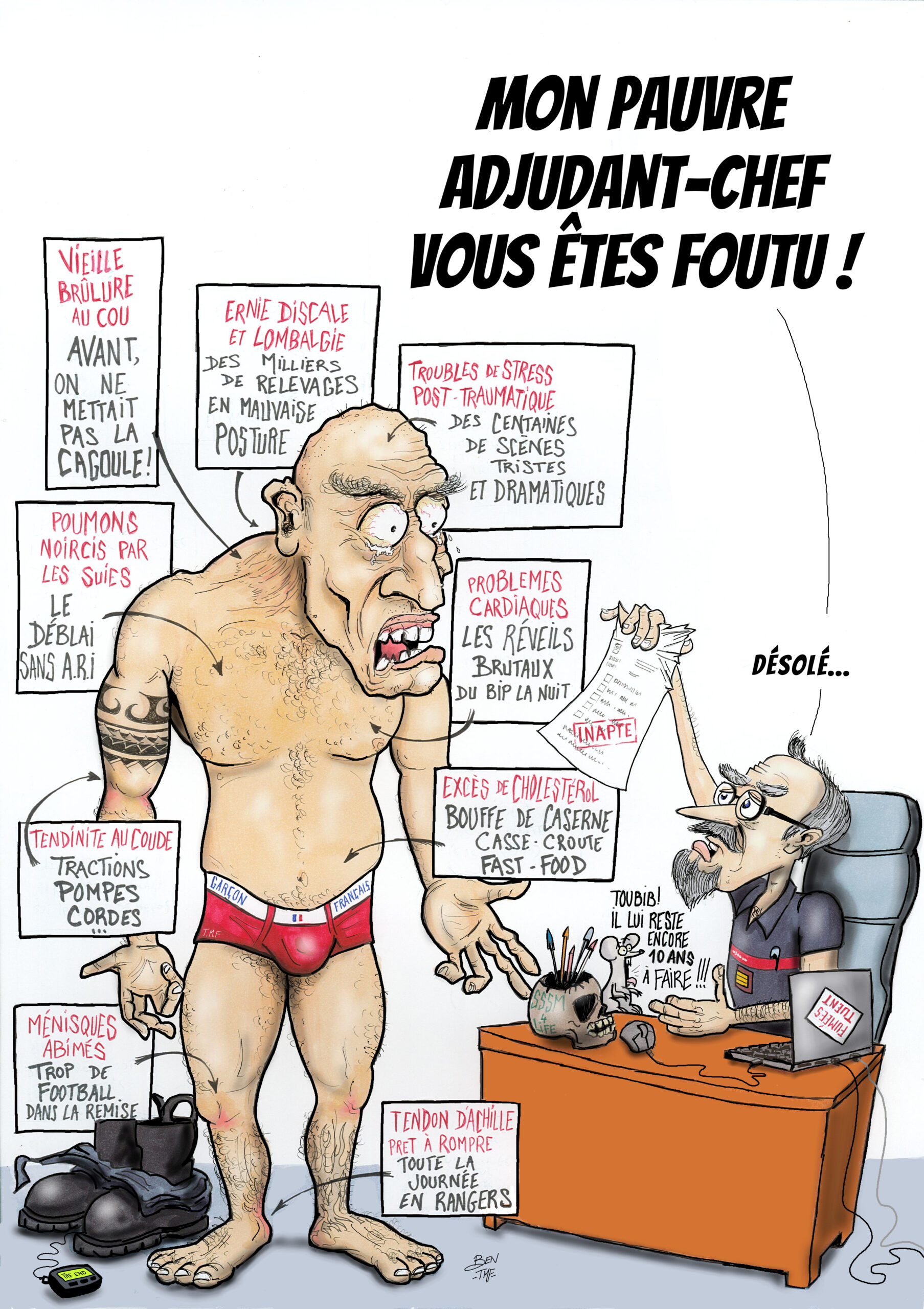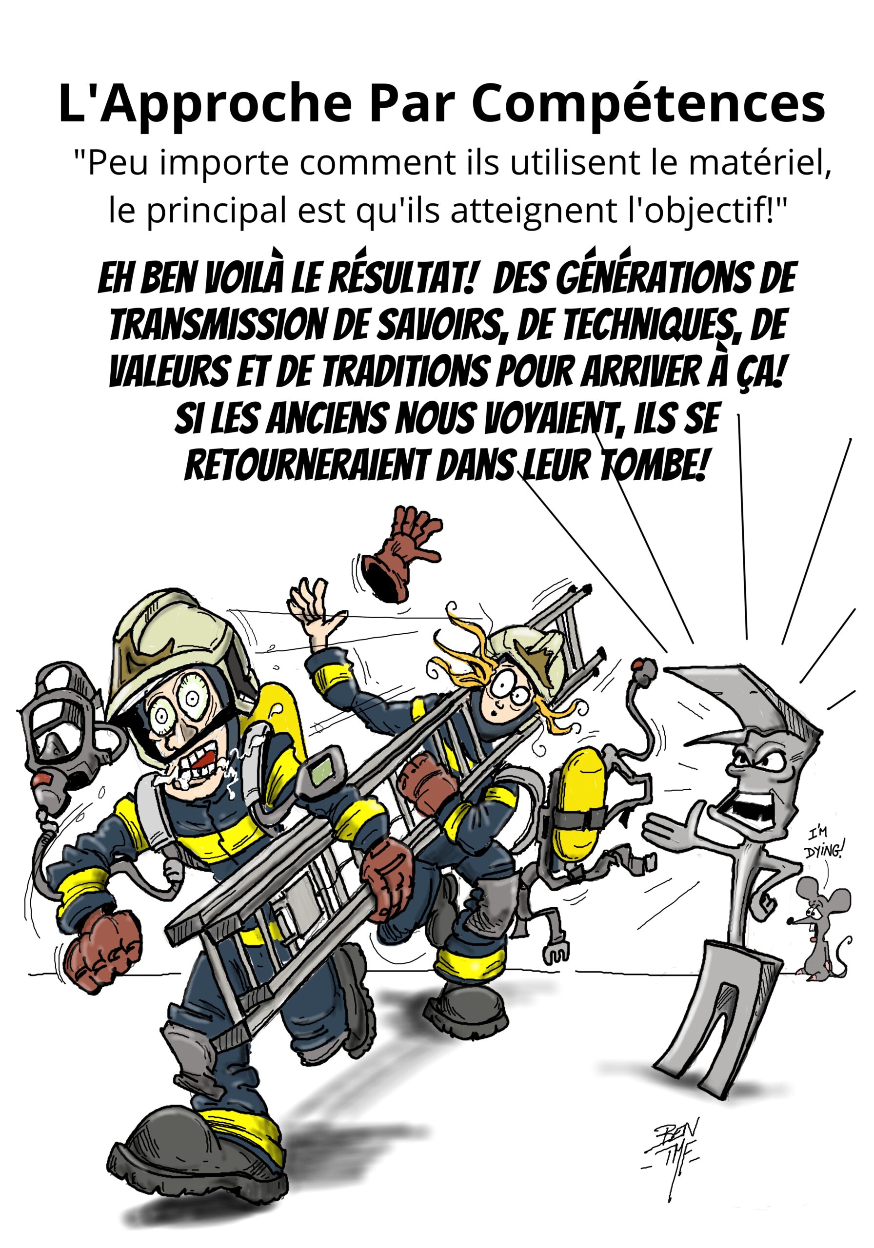 « BEN TMF » est pompier professionnel. Ses ouvrages de dessins « ça part dans les combles » TOME 1 et TOME 2 sont disponibles aux éditions Soldat du Feu. Depuis 2013, il illustre la dernière page du magazine des pompiers de France, Soldat du feu.