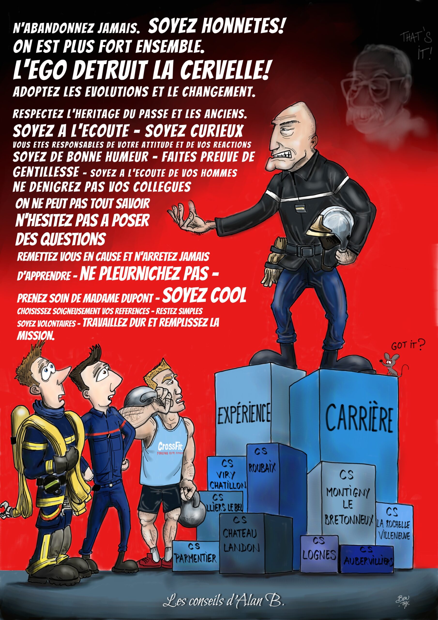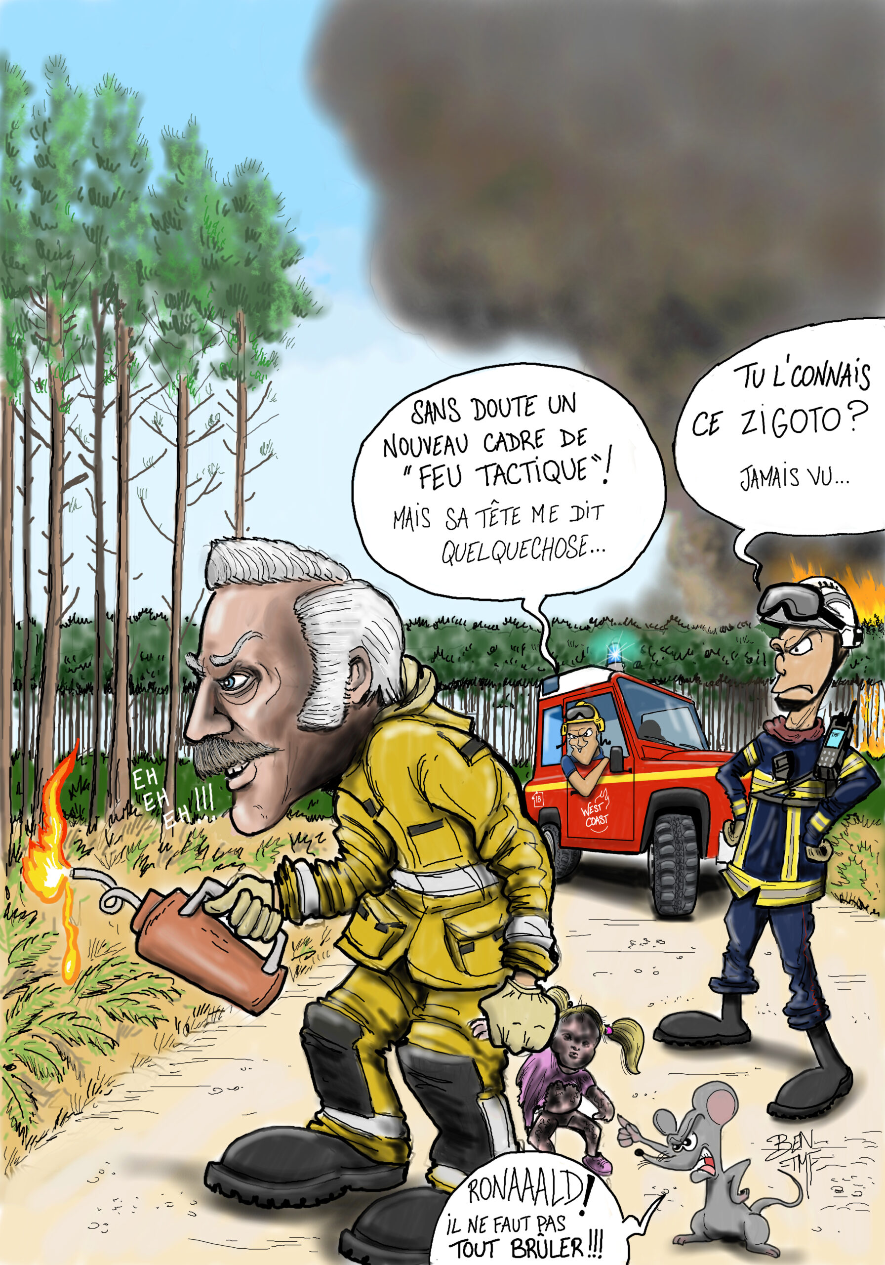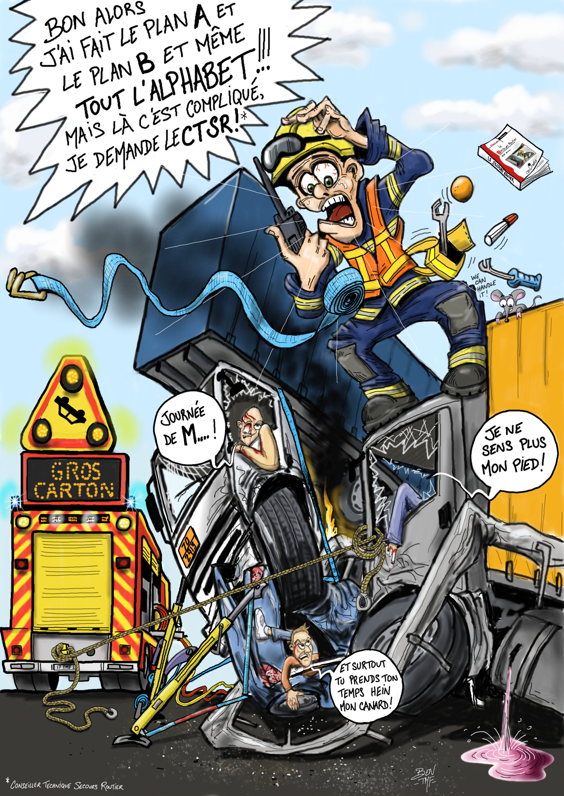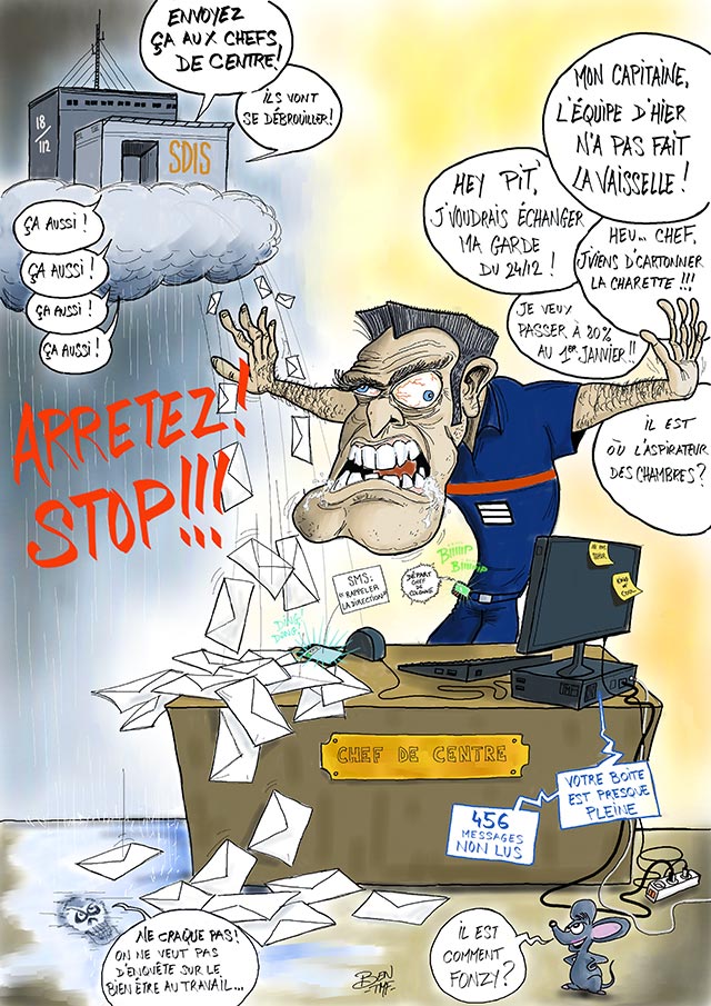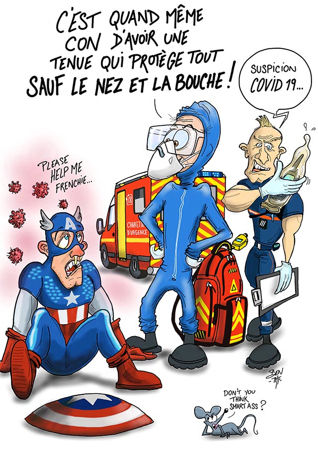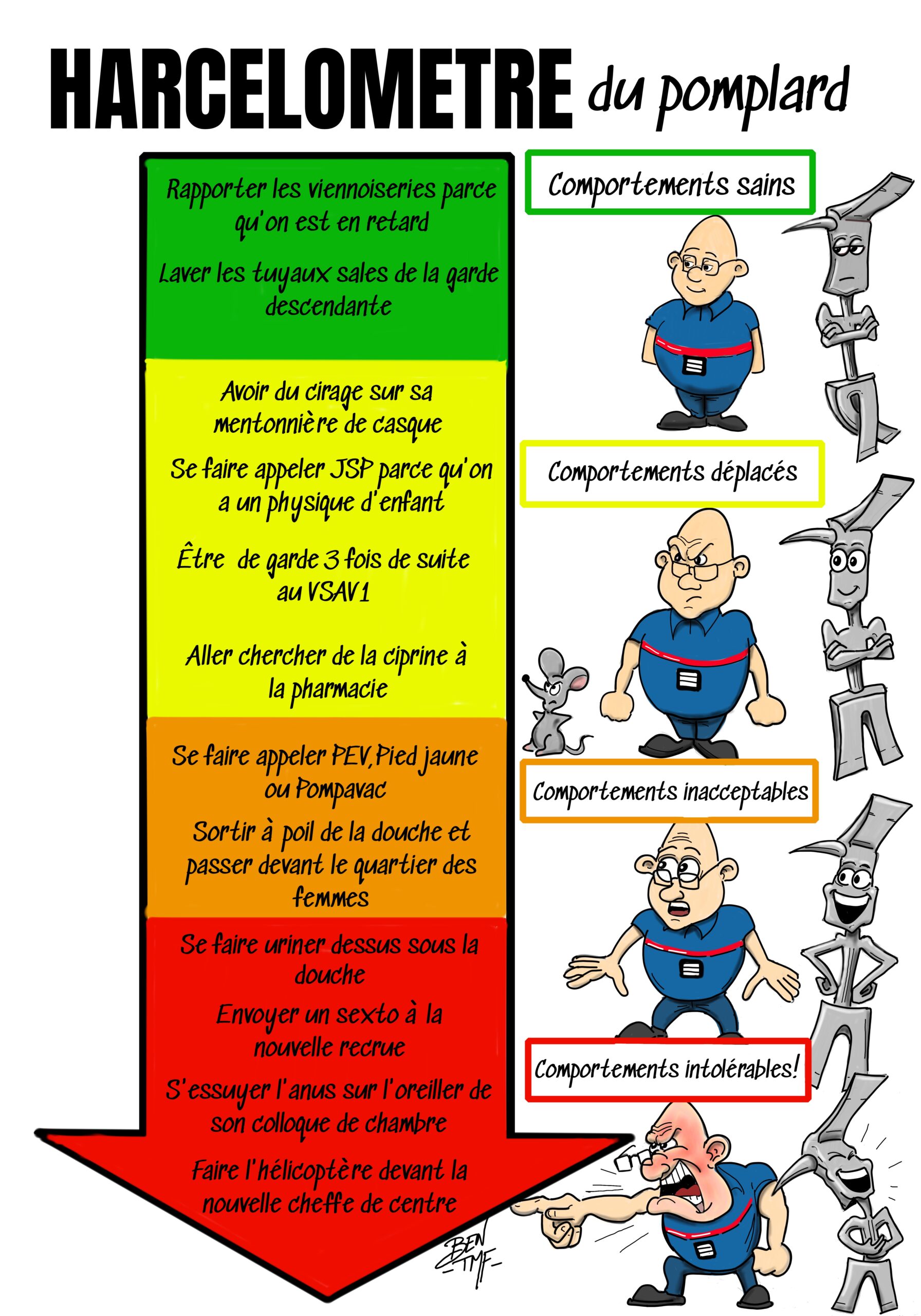 « BEN TMF » est pompier professionnel. Ses ouvrages de dessins « ça part dans les combles » TOME 1 et TOME 2 sont disponibles aux éditions Soldat du Feu. Depuis 2013, il illustre la dernière page du magazine des pompiers de France, Soldat du feu.
