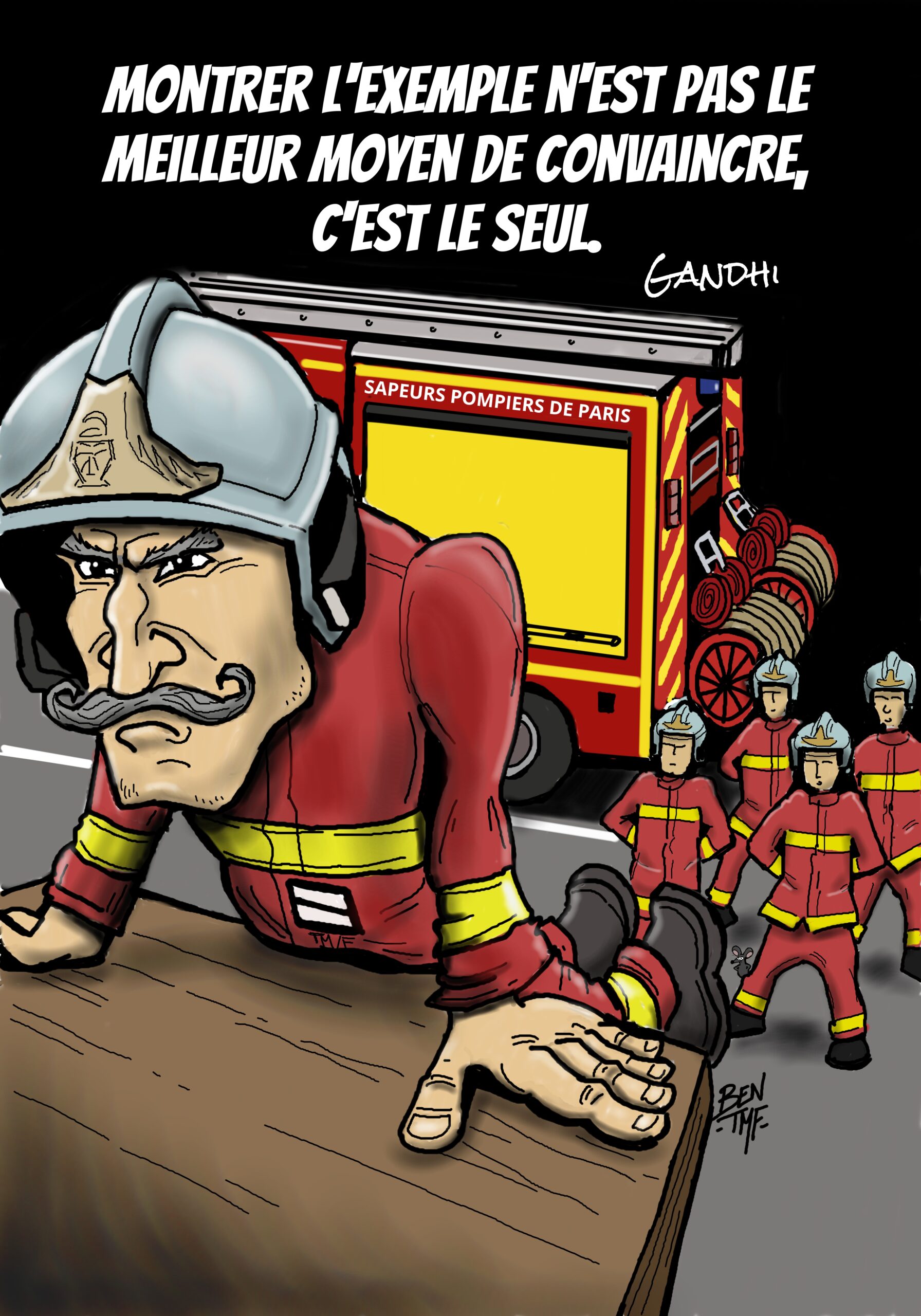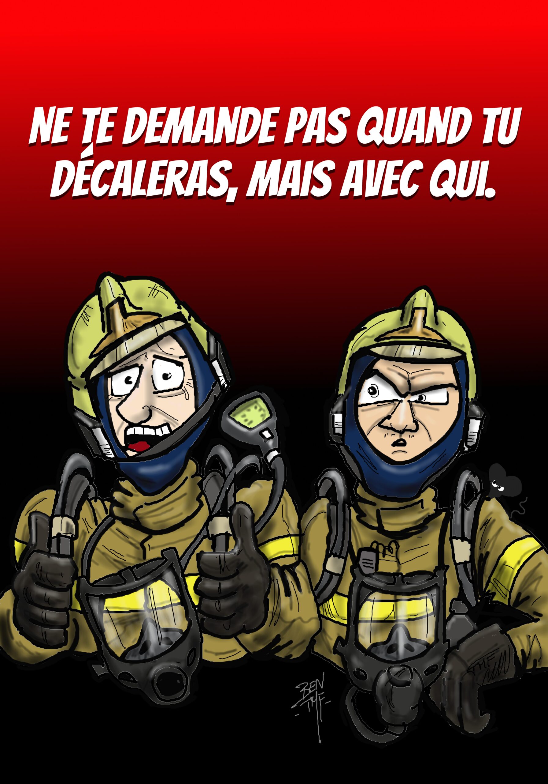 BEN TMF works as a lieutenant in a Fire Department in France. Also an artist, he realizes illustrations for the famous french fire magazine called Soldat du feu since 2013.
